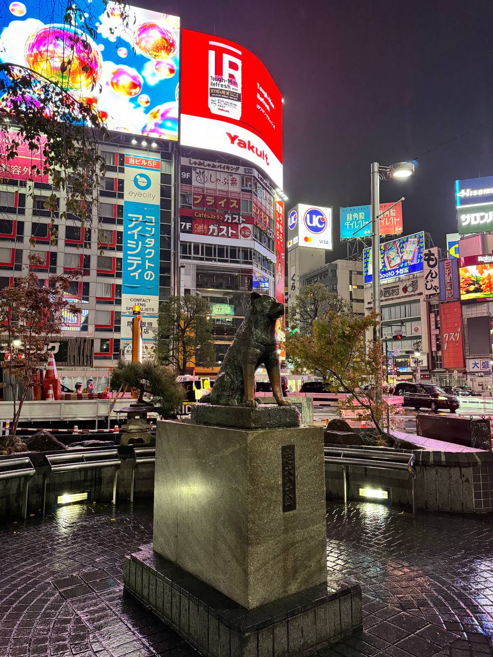 Я большой фанат аниме культуры, просто рвался и мечтал оказаться на Сибуе и вот я здесь, да-да, именно здесь в 20-31 прибыл Годжо Сатору. Пару сияющих экранов, перекресток тот, но как будто в уменьшенном масштабе, совсем не так, как я видел это на видео. По началу я даже подумал, что пришел не в то место, но статуя Хатико, кстати, классная оказалась совсем рядом и значит это именно тот перекресток, который был мне нужен.